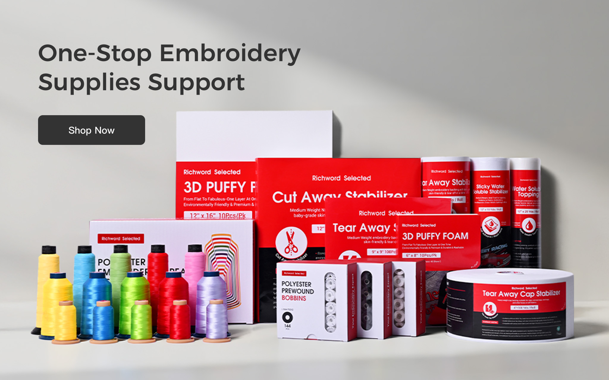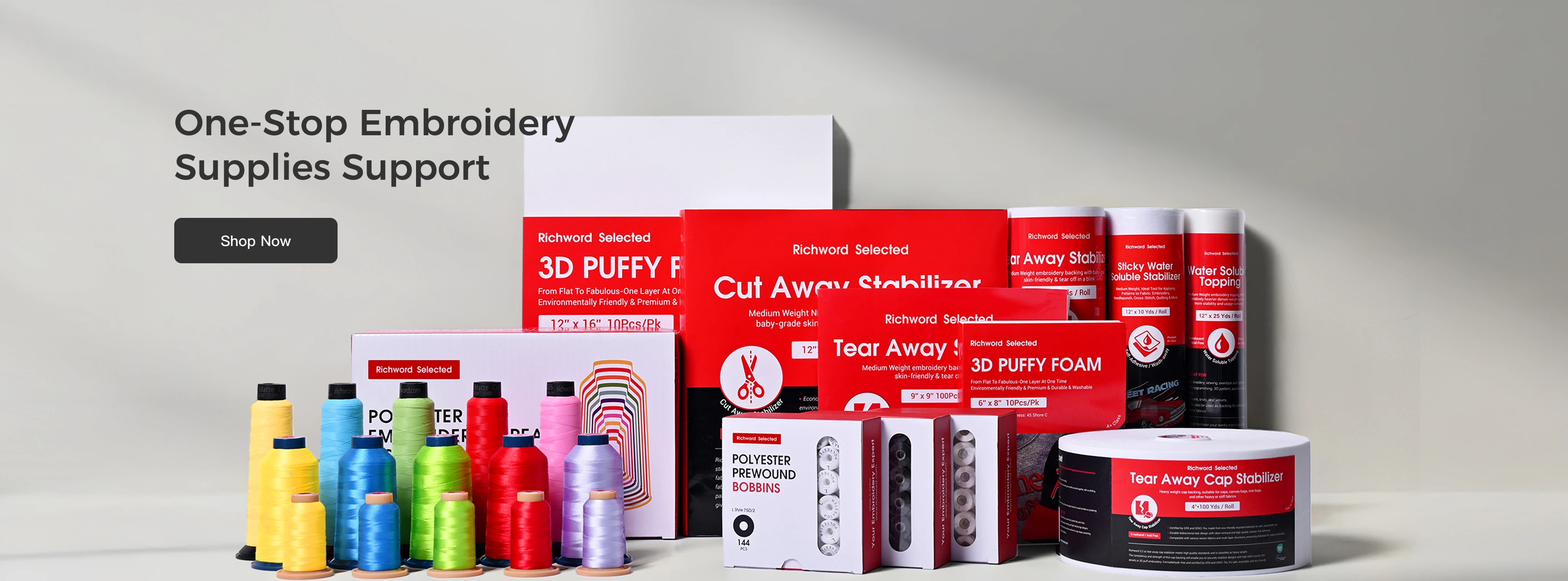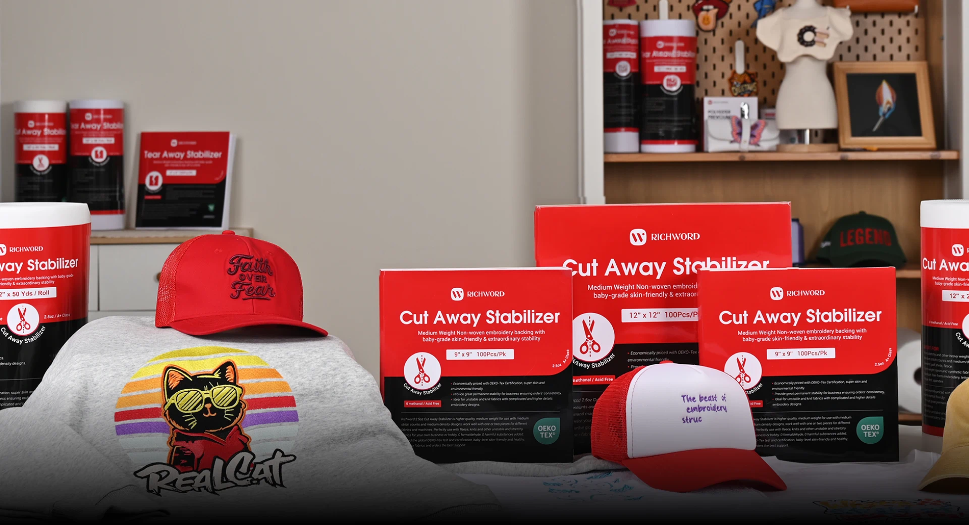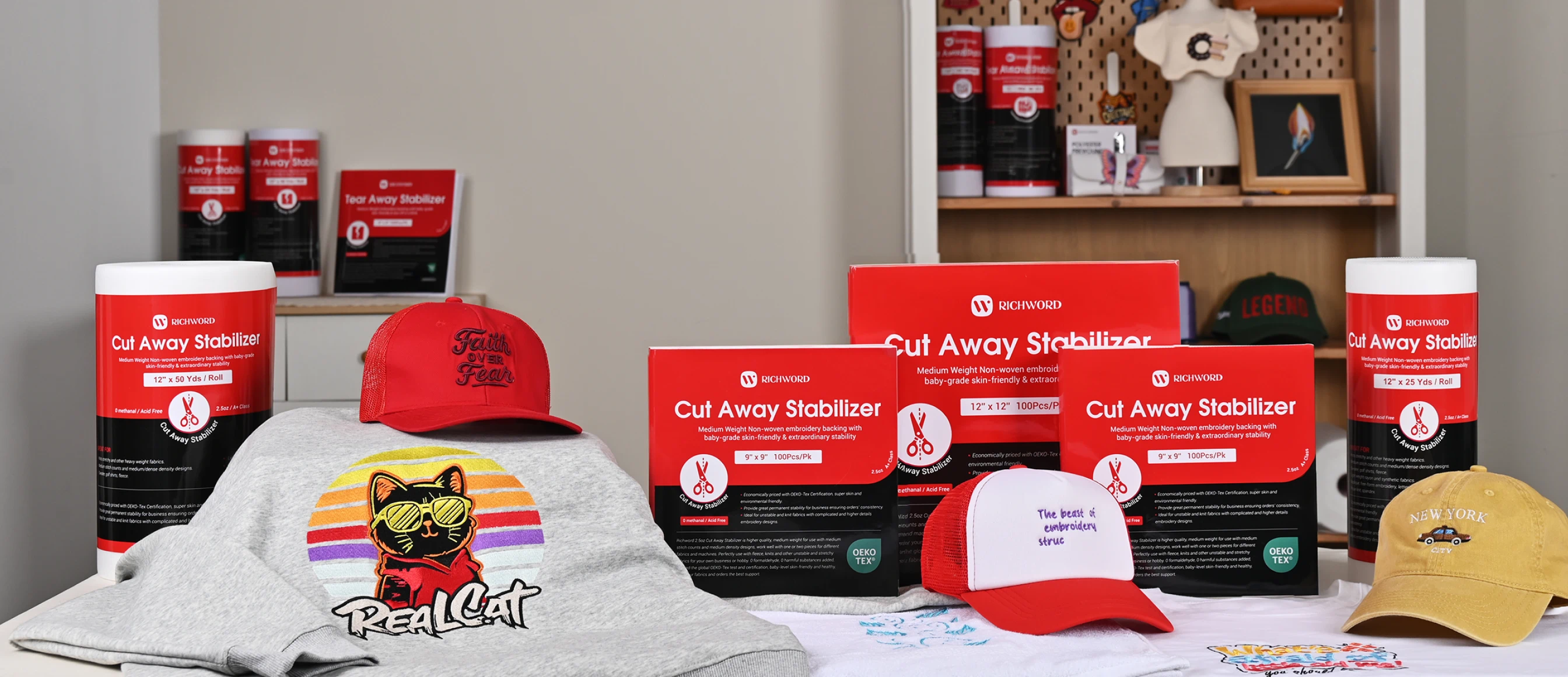We offer cut away, tear away, and wash away stabilizers—available in rolls or pre-cut sheets.