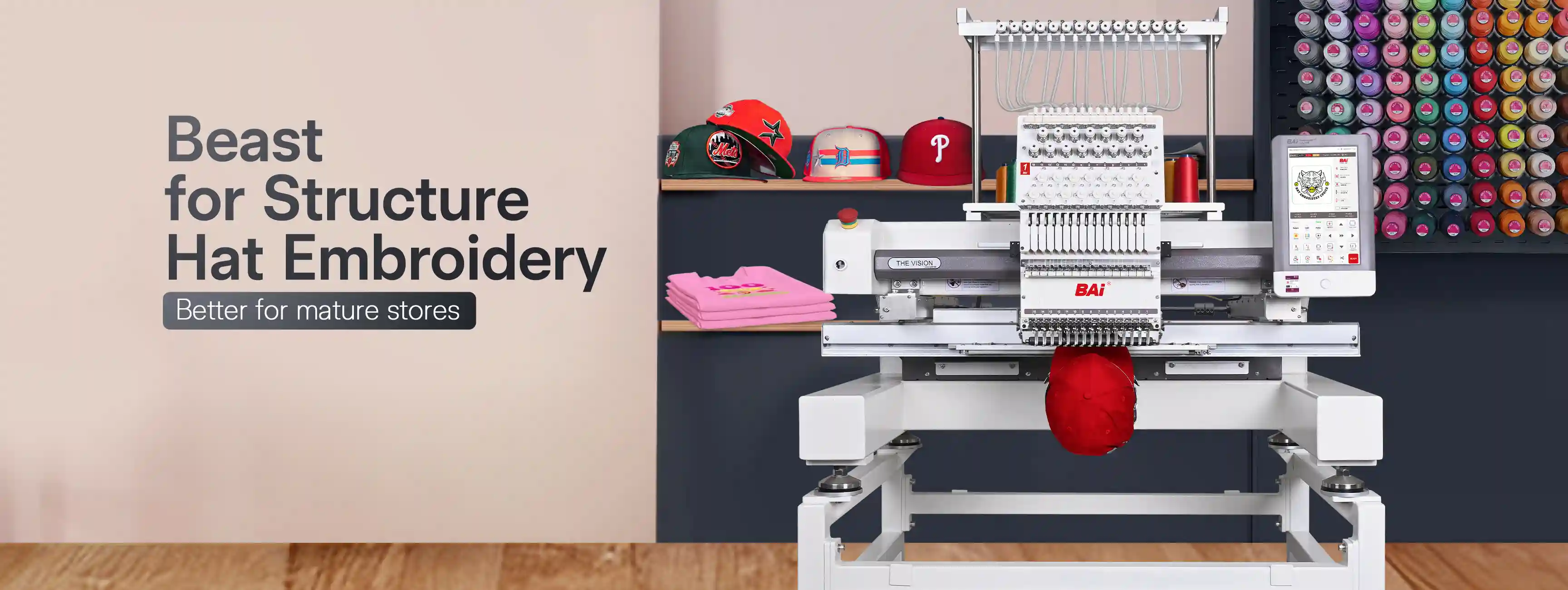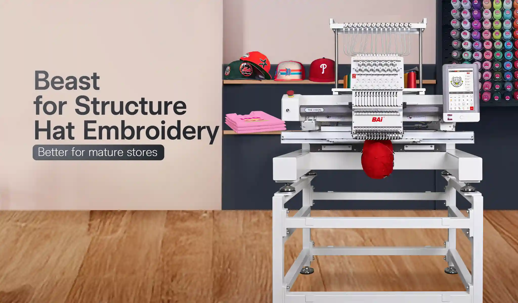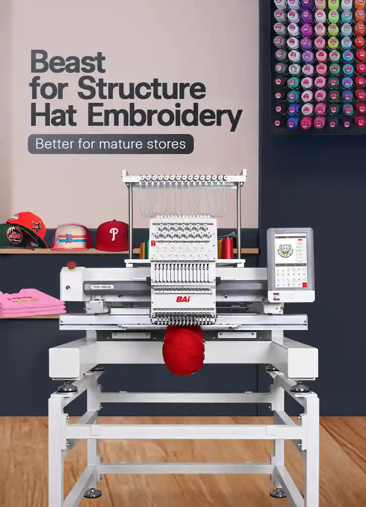 THE VISION offers higher speed, stronger penetration, and enhanced embroidery capabilities for larger-scale production.