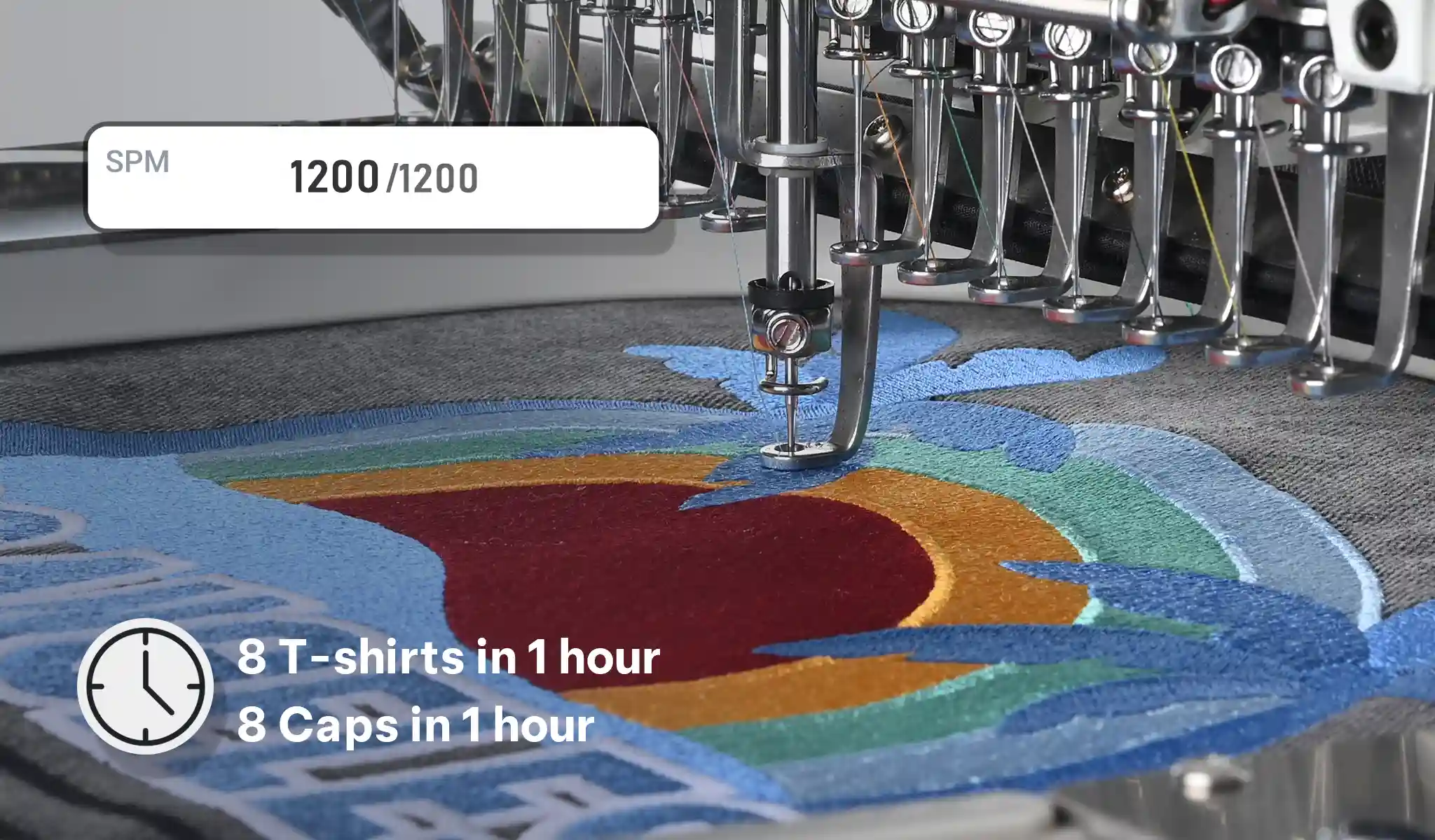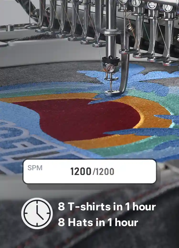 With speed up to 1200 SPM and a refined mechanical system, it reduces setup time and ensures consistent stitches.