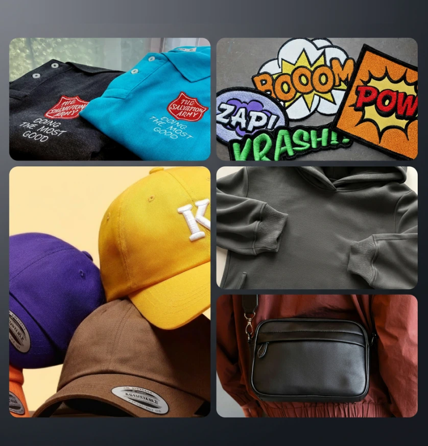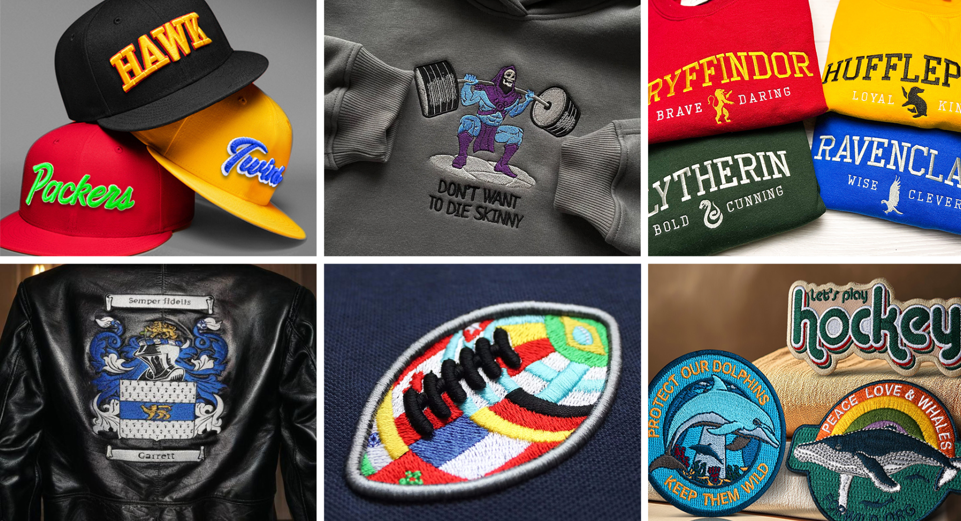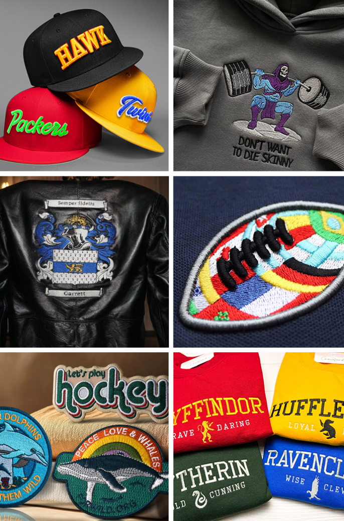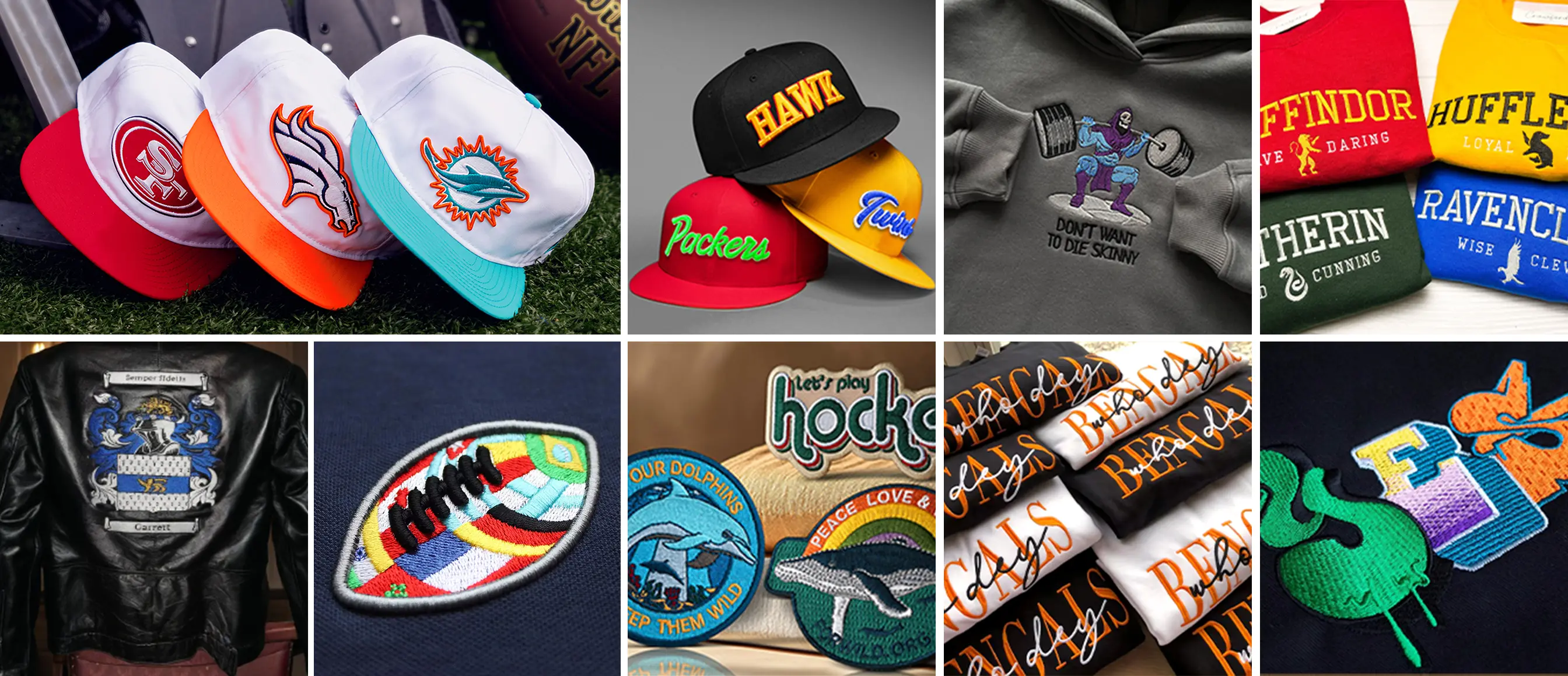 Embroider on hats, bags, shirts, hoodies, jackets, leather, patches and more